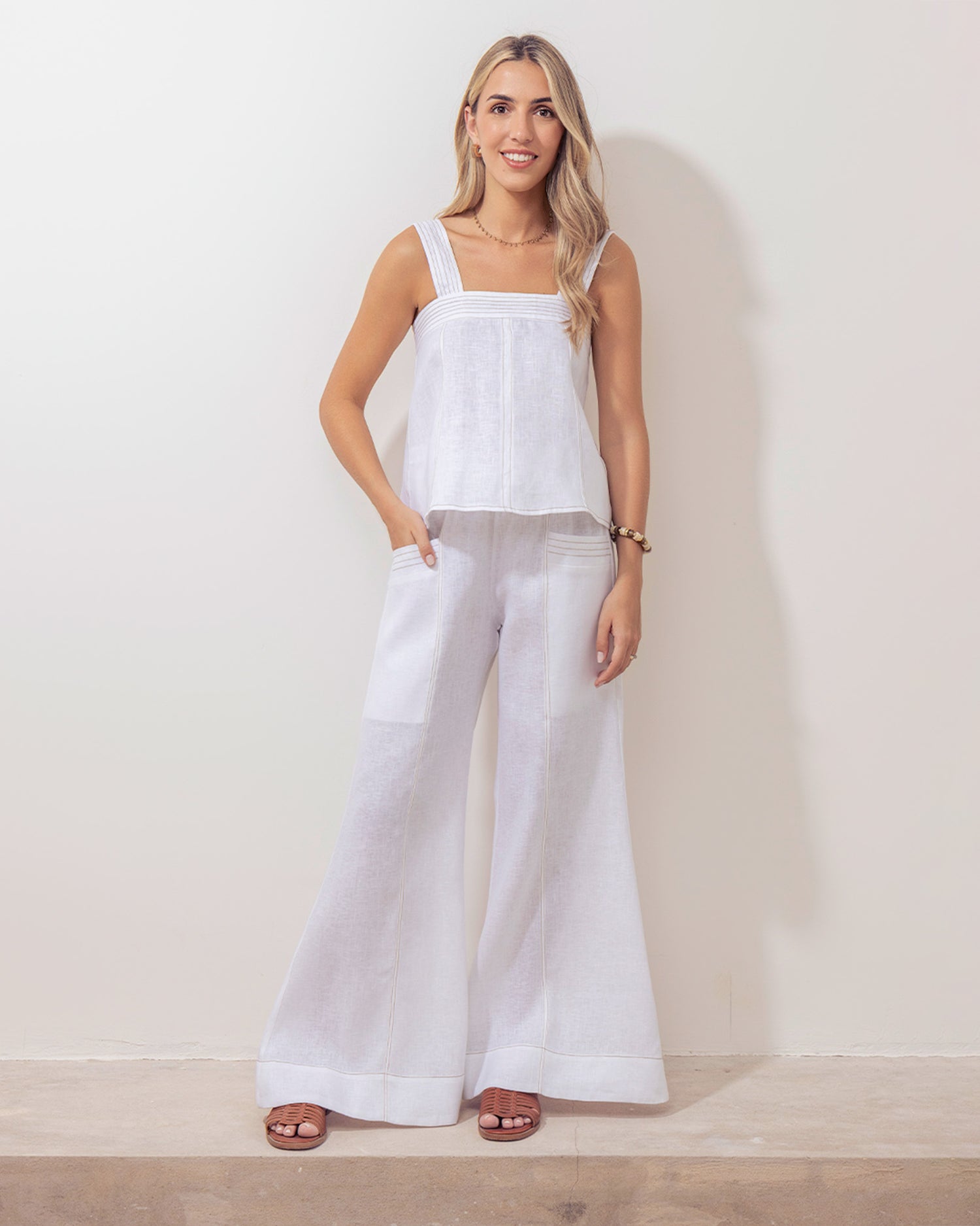 Teresita Top Natural and Black Linen