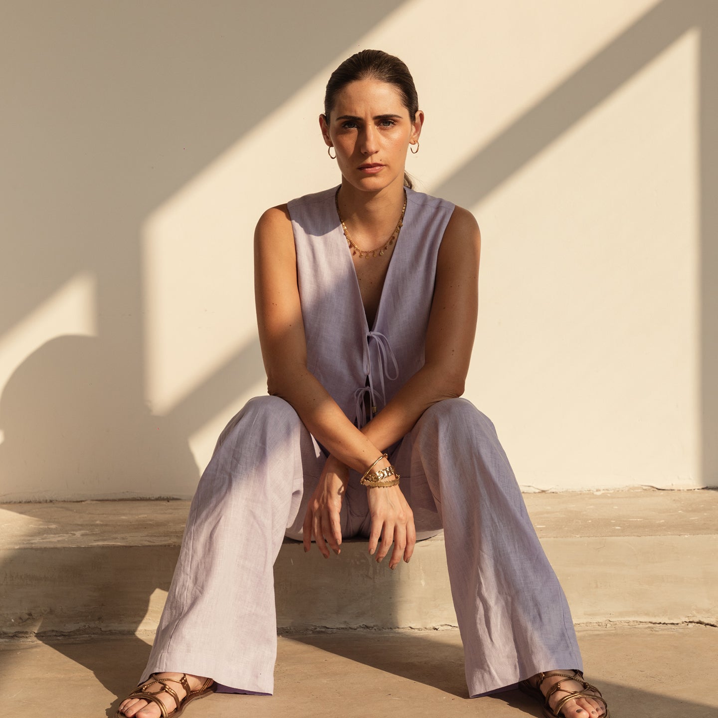 Coffee Vest in Lavender Linen